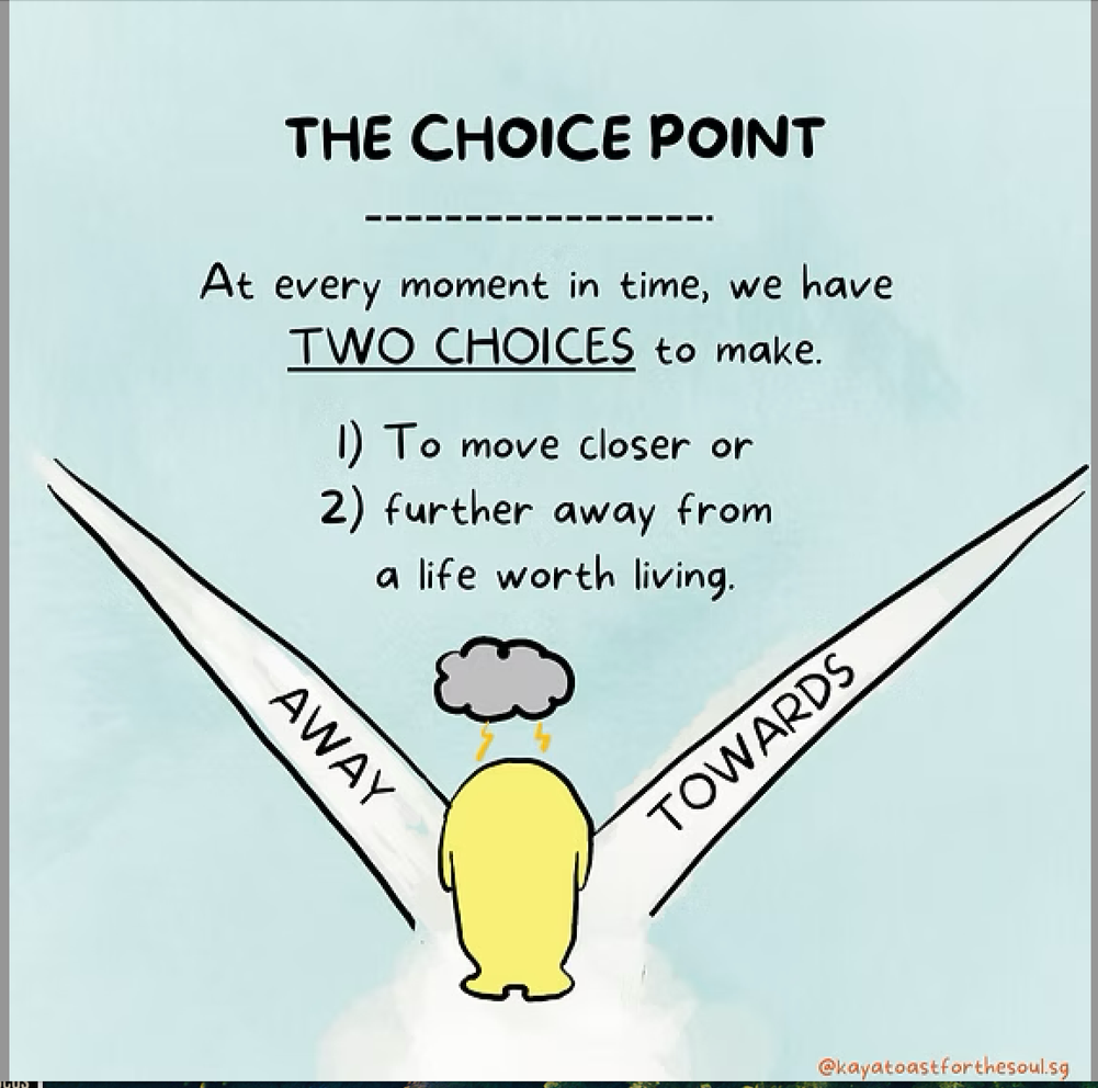 Acceptance and Commitment Therapy (ACT) describes these inflection points as “choice points.”